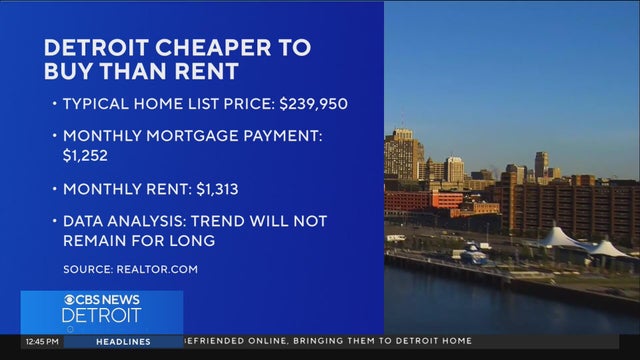 A report from Realtor.com shows that a typical monthly mortgage payment in Detroit is $1,252, while the typical monthly rent is $1,313. The analysis shows that trend will not remain for long.