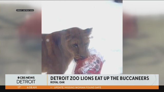 The Detroit Zoo shared a video of its lions chewing up a stuffed football with the Tampa Bay Buccaneers logo.