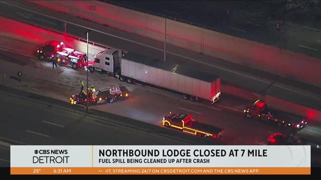 A portion of the Lodge Freeway in Detroit is currently closed after a hit-and-run involving a semi-truck led to a fuel leak.