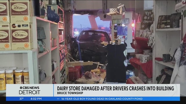 The driver of a Ford Focus crashed through the front door of the Crooked Creek Farm Dairy in Bruce Township on Sunday.