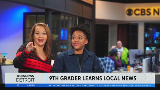 Ninth-grade student Langston Howard spent the day with Amyre Makupson and the CBS News Detroit team to learn about the local news business. The visit was part of Nickelodeon's "Our World" initiative.