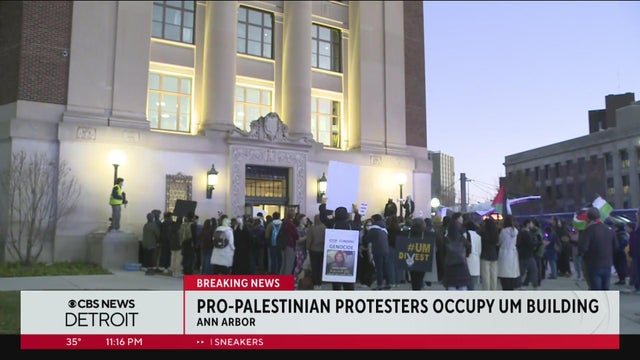 A Palestinian advocacy group protested Friday on the University of Michigan's campus, entering the Ruthven Building.