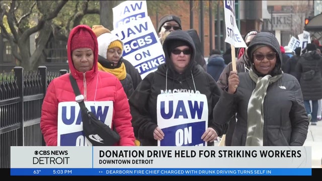 In an act of solidary, striking workers gathered at "Strike City" in Greektown to launch a donation drive on Monday.