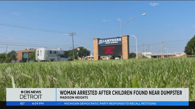 A 20-year-old woman is in custody after two children were found near the dumpsters at a high school in Madison Heights on Saturday.