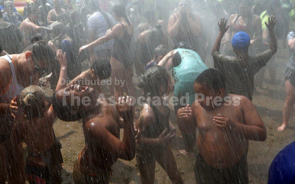 Children participated in the 32nd annual Wayne County Mud Day on Tuesday at Nankin Mills Park in Westland, a suburb west of Detroit. Participants frolicked, bathed and lounged in a large mud pit, then sloppily engaged in Mud Limbo and Wheelbarrow Races.