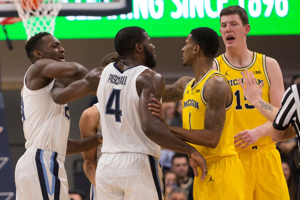 Villanova's frustration was evident after Michigan's Zavier Simpson's flagrant foul led to a brief scuffle with Dhamir Cosby-Roundtree near midcourt with 13 minutes remaining and Michigan leading 52-24.