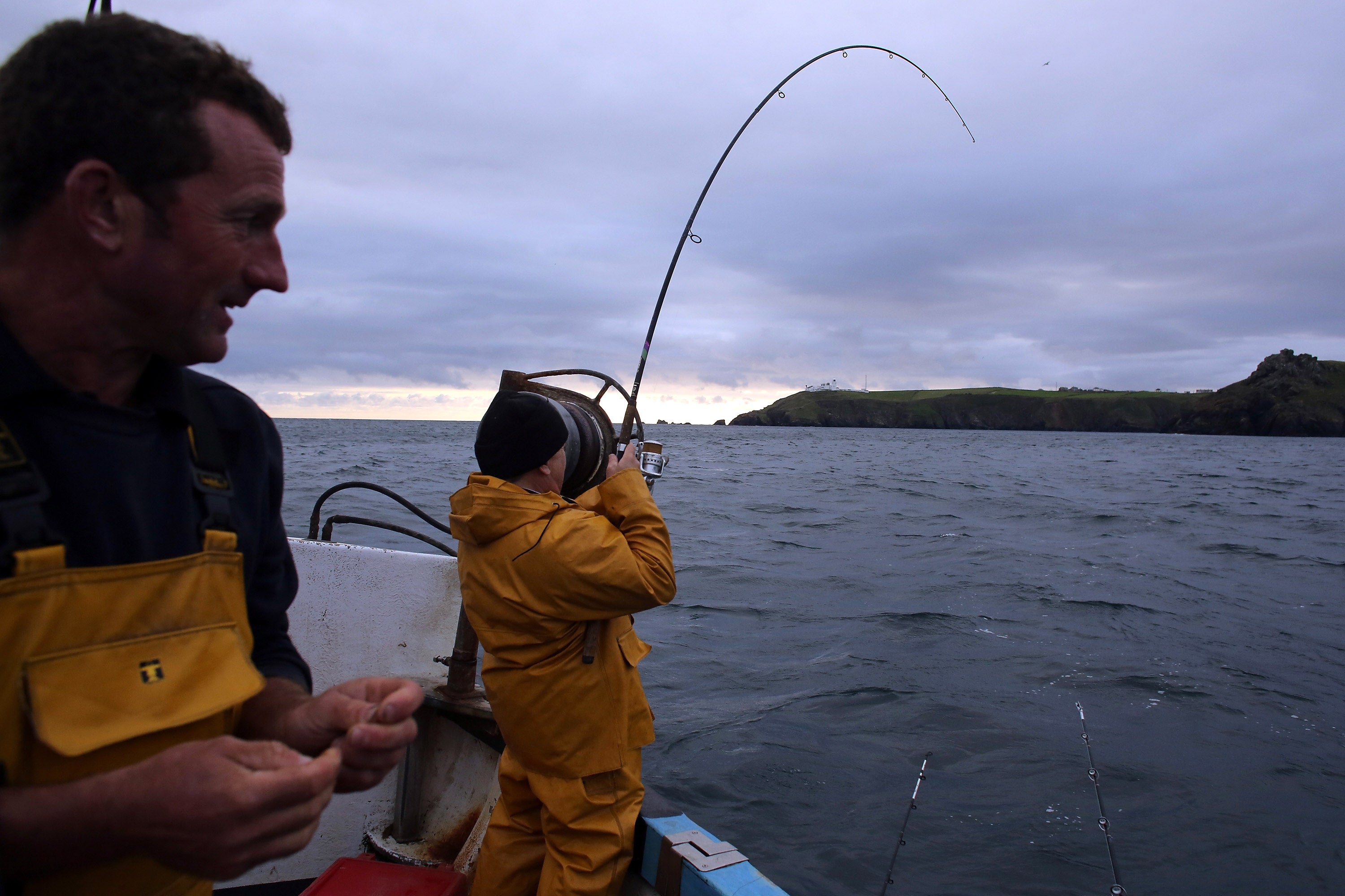 CADGWITH, ENGLAND - SEPTEMBER 05: Fishermen fish for bass close to the Lizard penisula as they take part in the final Cadgwith Cove fortnightly fishing competition of the year, in Cadgwith on September 5, 2013 in Cornwall, England. The summertime competition to catch the heaviest fish of a chosen type, (for this final the fish was bass) allows locals and visitors the chance to fish for fun and a cash prize, with the catch cooked in a pot at the end of the night on some occasions. Set on the Lizard peninsula in Cornwall, the village of Cadgwith, which was established in medieval times, owes its existence to the fishing industry. However, whilst fishing remains an important part of village life today, tourism is also now a major source of income for the inhabitants. (Photo by Matt Cardy/Getty Images)