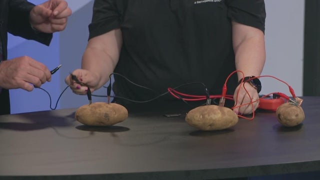 The Michigan Science Center demonstrates how you can create a battery using a potato.
