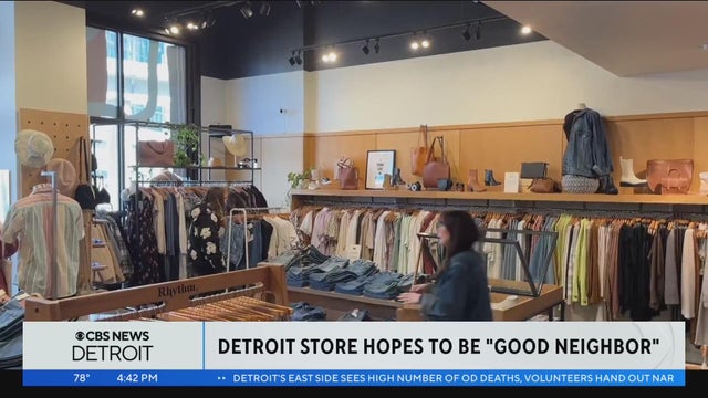 Good Neighbor in downtown Detroit is selling items, promoted as having "good" stories.