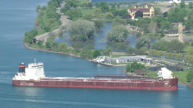 A 639-foot freighter carrying a cargo of salt has run aground in the Detroit River off Belle Isle Wednesday morning.