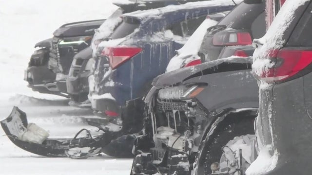 A major winter storm slammed the northern U.S. In Michigan, blizzard-like conditions led to a massive pileup involving more than 100 cars and trucks. Meanwhile, an intense snow squall also battered parts of western New York. Tom Hanson reports.