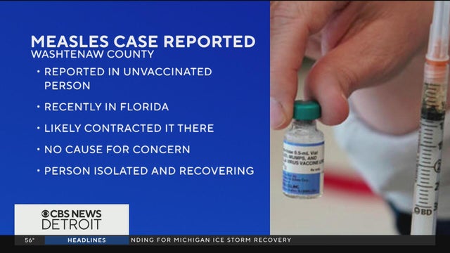 A measles case among an unvaccinated adult has been confirmed in Washtenaw County, with public health officials investigating when and where others may have been exposed in Southeast Michigan.