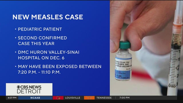 Oakland County health officials are reporting a confirmed case of measles in a pediatric patient at DMC Huron Valley-Sinai Hospital.