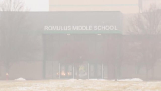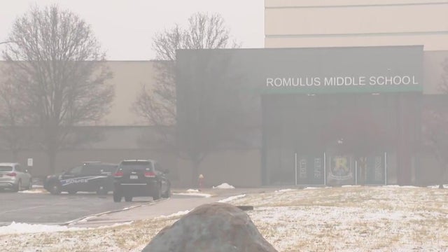 Romulus Community Schools has said it would like students to remain at school; but CBS News Detroit's crew has seen parents come and go at Romulus Middle School after it became known that someone tried to enter the building with a firearm. That individual is now in custody.