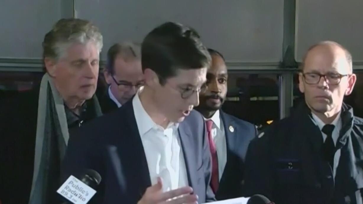 Brett Smiley, mayor of Providence, Rhode Island, gives initial reports after a shooting Dec. 13, 2025, at the campus of Brown University.