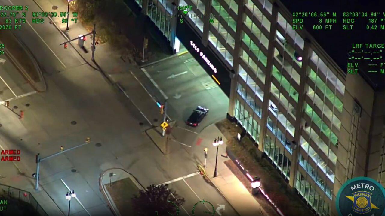 Michigan State Police provided this video of the Trooper 2 aviation unit working with state troopers on the ground to track the location of a stolen vehicle as the driver headed toward the MGM Grand Detroit.