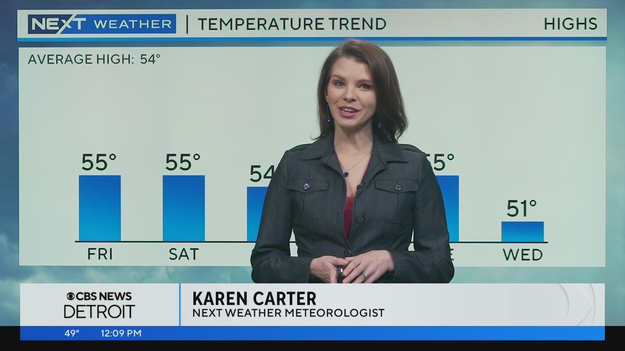 Clouds increase this afternoon with a small chance of rain to move in this evening. Meteorologist Karen Carter has your forecast and a look at how long the near normal temperatures will last. www.cbsdetroit.com/weather