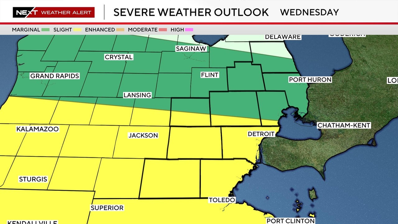 Scattered severe storms are possible Wednesday in Metro Detroit. In the meantime, a flood watch remains in effect for the region through late Thursday. Here's what to look for and when.