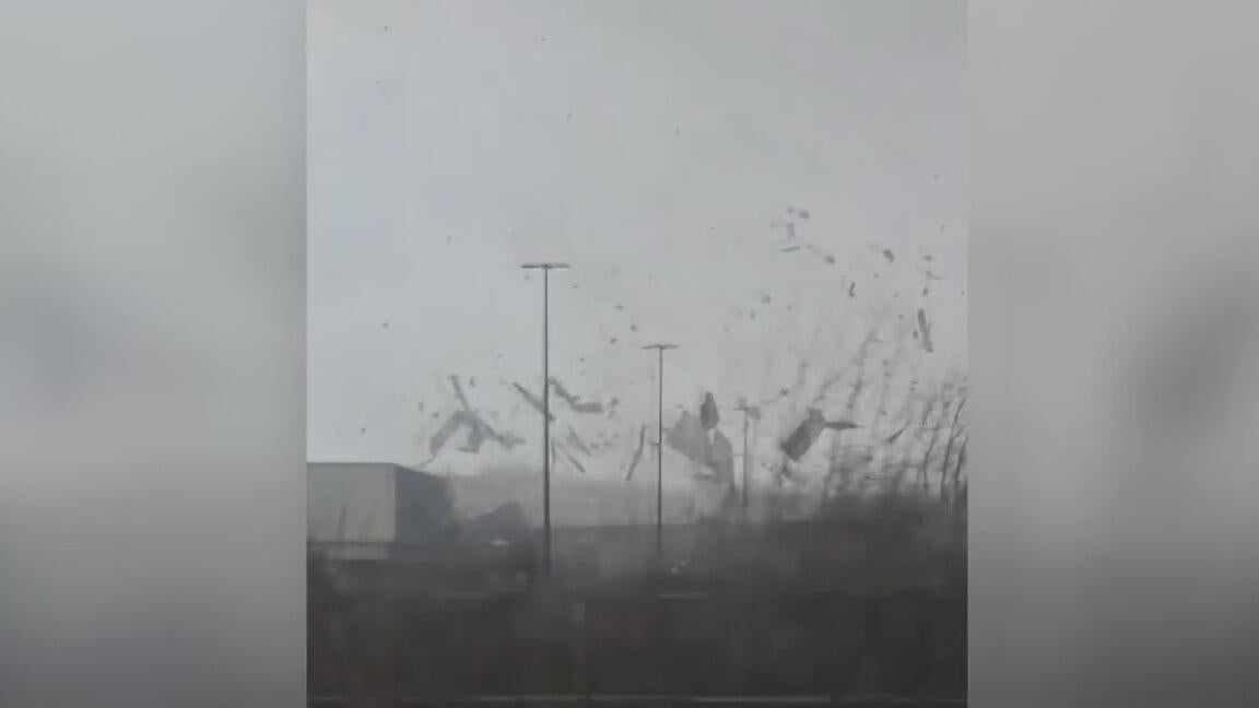 Video from Lindsey Whitaker captures a tornado ripping a roof off a Menards store in Three Rivers, Michigan.