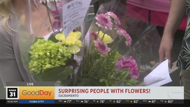 Molly Riehl is hitting the streets of Downtown Sacramento this morning with Relles Florist, handing out bouquets of flowers to commuters! It's all for the "Petal it Forward" program, each person gets TWO bouquets, one to keep and one to give away!