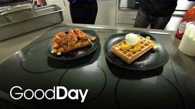 Tomorrow is National Waffle Day so The Waffle Experience is coming in to pre-game with their Sweet Heat Chicken 'n' Waffle and Peach Cobbler Waffle!