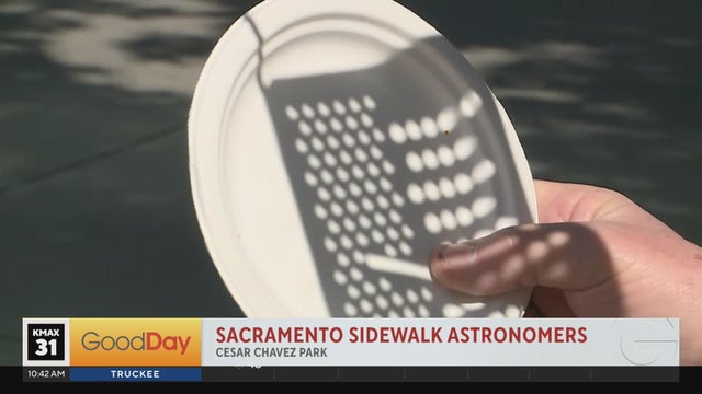 Cody has taken the caravan to Cesar Chavez Park in downtown, he's hanging out with some sidewalk astronomers safely watching the eclipse!