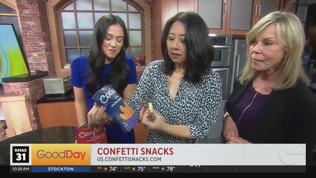 The crew tastes delicious Confetti Snacks!
