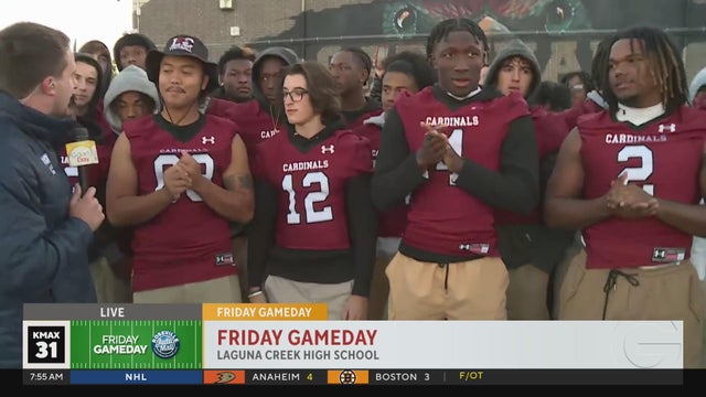 Andrew Haubner and Sakura Gray are at Laguna Creek High School for Friday Gameday! Check out their cheer team and color guard as their color guard is ranked in the top 16 of the country!