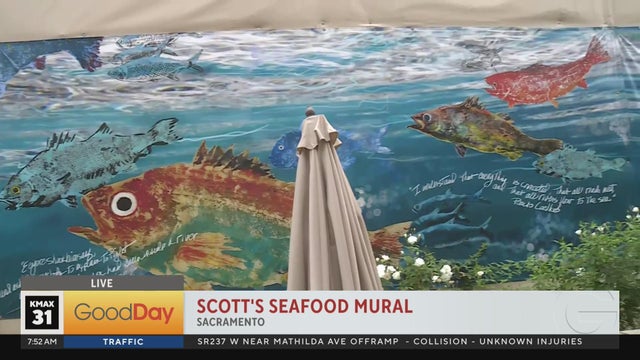 Molly Riehl is in Sacramento at Scott's Seafood showing us their new mural. See how this ginormous covers a great area of Scott's Seafood
