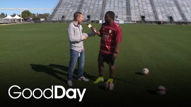 Director Jonathan Meris was at the Santa Monica Pier with a Good Day Sacramento sign saying "Hello!"