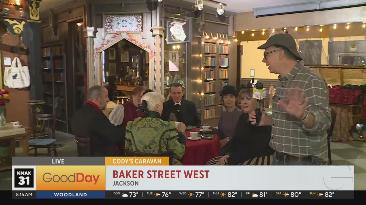 Baker Street West, located on the second floor at Hein & Company Bookstore in Jackson, is a remarkable environment, recreating a Victorian Square and several themed shops honoring Sherlock Holmes, including his residence at 221B Baker Street. Cody has pulled the caravan into Jackson to explore!