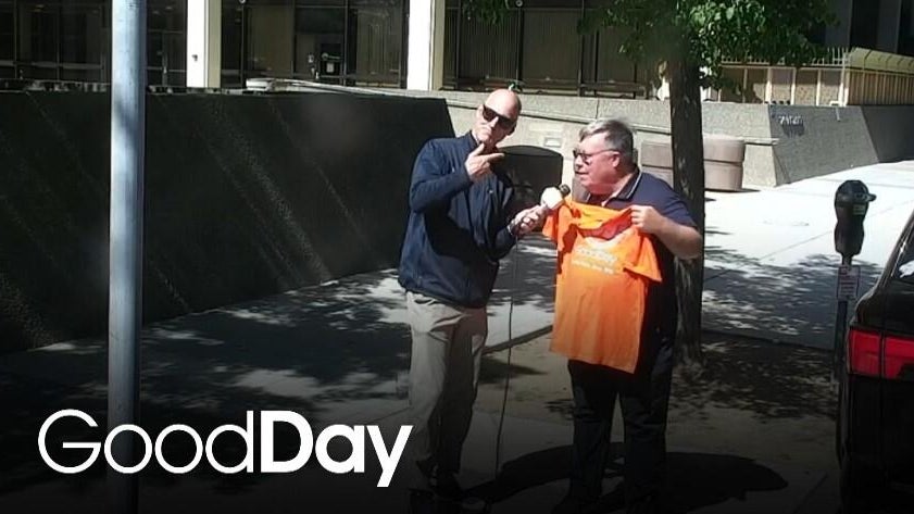 Dave Grashoff is out delivering one of the brightly colored anniversary shirts we rocked yesterday to a loyal Good Day viewer — Joey Swiencki! Just one more way we’re saying thank you for 30 amazing years.