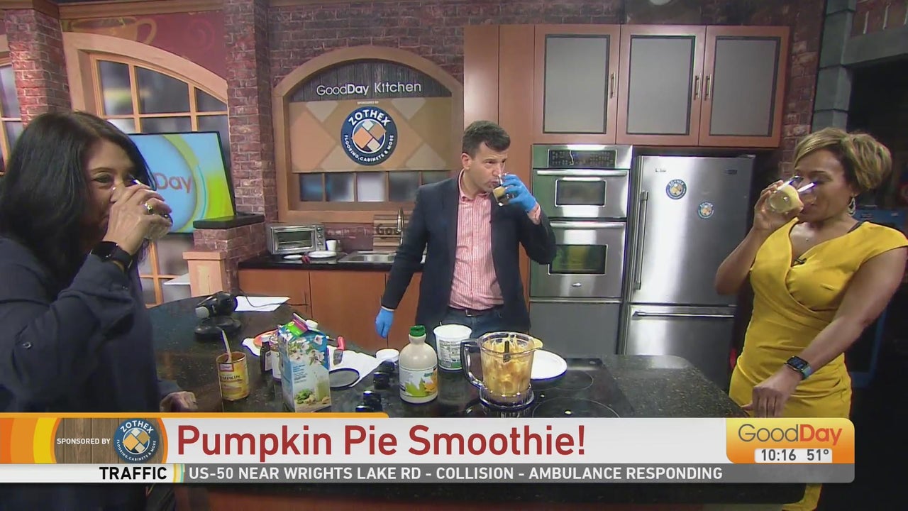 John's in the Good Day Kitchen, whipping up some pumpkin pie smoothies! Tina and Tracy give them a try...