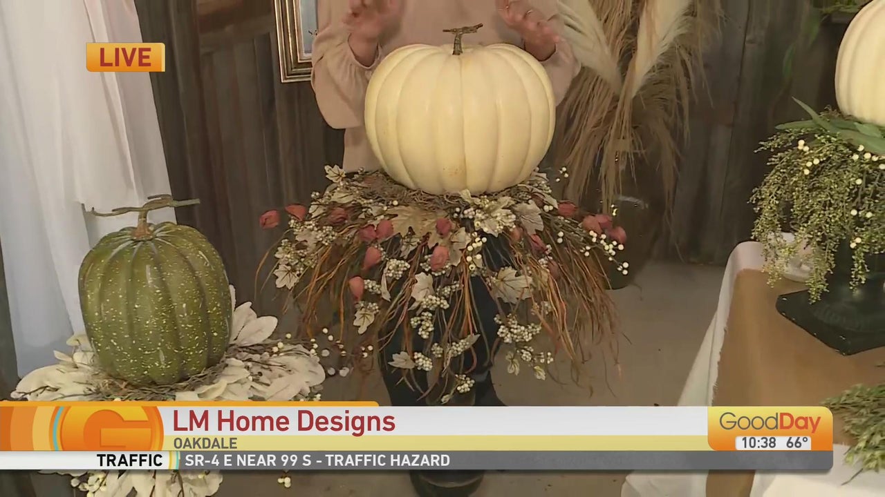 Lisa Norris of LM Home Designs does staging, home consults, color consults, and room re-designs! She joins Tina today to show us some easy DIY projects, like pumpkins on candlesticks and fall foliage!