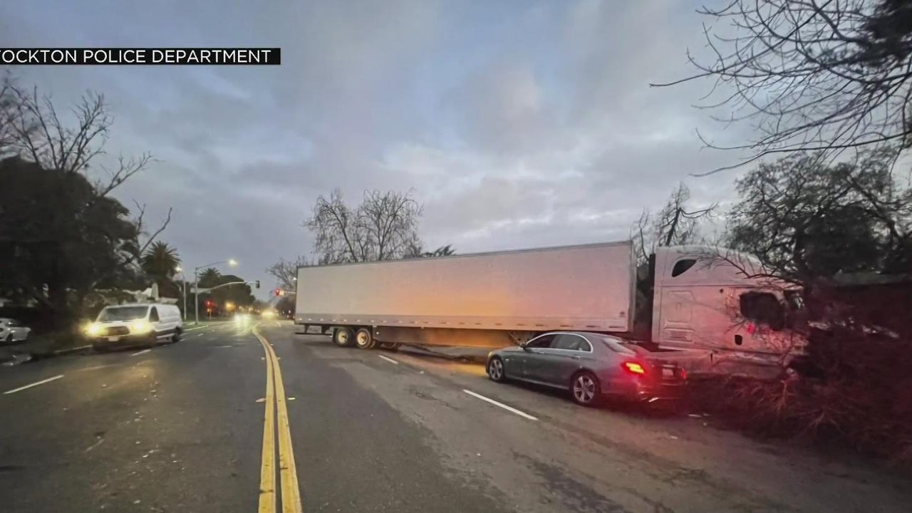 Stockton road shutdown due to jackknifed big rig