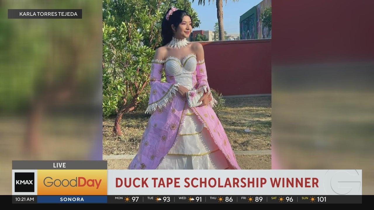 A young lady from Southern California won the dress grand prize for the duck tape stuck at prom scholarship contest, winning $10,000.