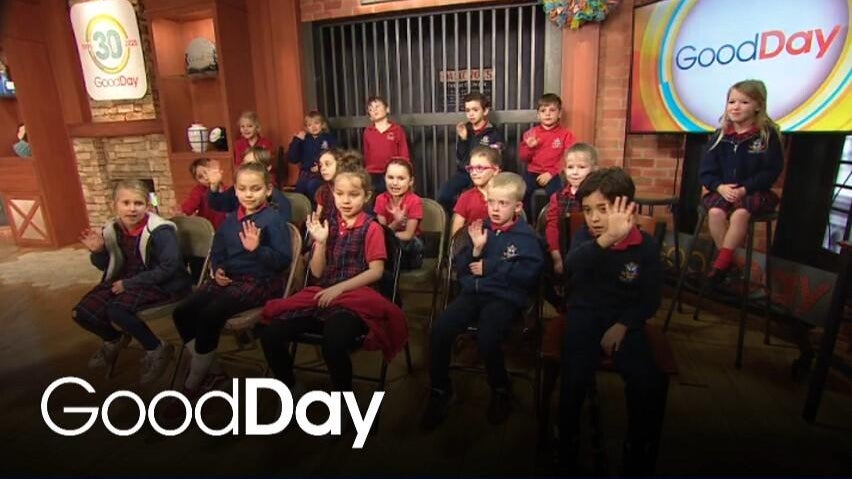 Students from Holy Spirit Parish School in Land Park stop by Good Day!