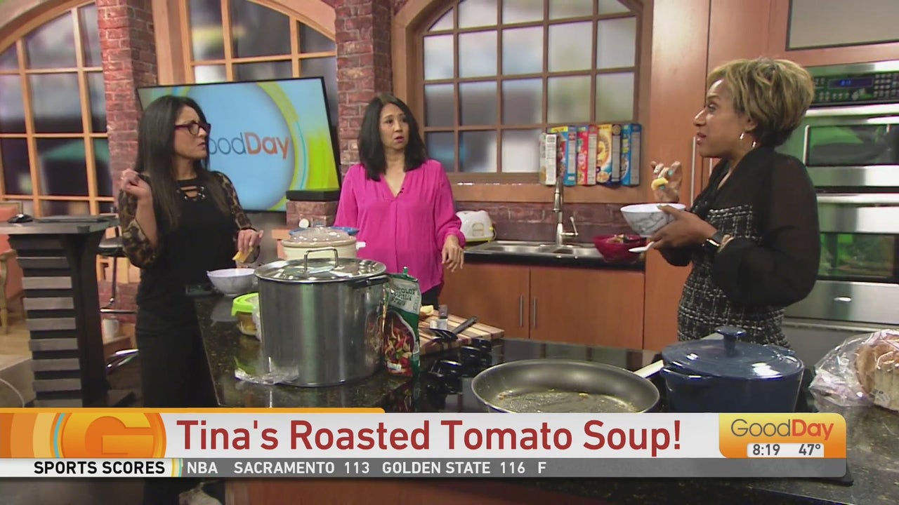 Someone on the crew thought it would be a great idea if we had a "soup day" in the studio, and EVERYONE agreed! Tina's kicking it off today with roasted tomato soup with grilled cheese!