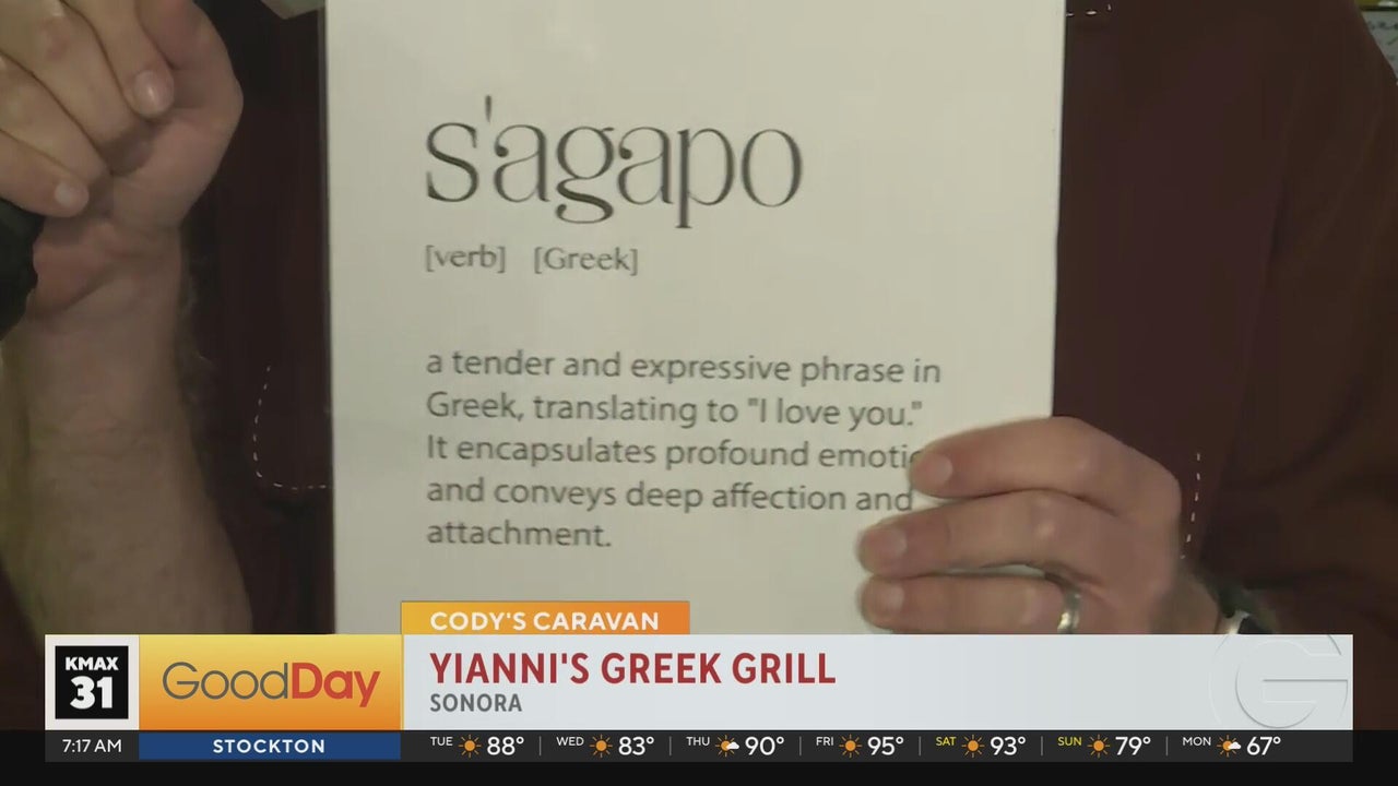 Cody is enjoying Greek food at Yianni's Greek Grill