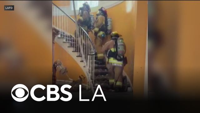 Luzdelia Caballero reports from Beverly Crest, where firefighters battled a large fire at a mansion for hours before finally containing the blaze.