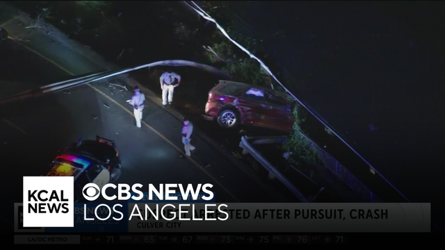 One person was arrested after leading authorities on a chase along the 405 Freeway that abruptly ended when they slammed through a guardrail and crashed into a home.