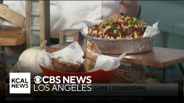 Christine Gerriets, Dodger Stadium executive chef, shares what’s on the menu: chili oil dumplings, 50/50 fries, colossal baked potato, fired peanut butter and hazelnut spread sandwich and the chicken karaage bowl.