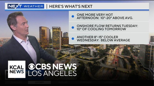 Monday is the last of the heat streak, with an onshore flow returning Tuesday to drop temperatures by 10 degrees in places.