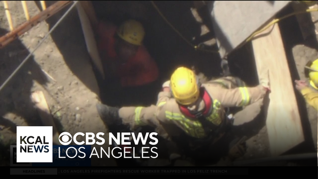 After nearly six hours, Los Angeles firefighters saved a construction worker who fell into an 8-foot deep trench in Los Feliz — a rescue mission carried out during a sweltering, triple-digit heat wave. Lauren Pozen reports.