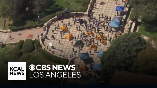 A gathering of hundreds of pro-Palestinian protesters on the UCLA campus has been declared as an unlawful assembly by campus police. SkyCal is overhead with more.