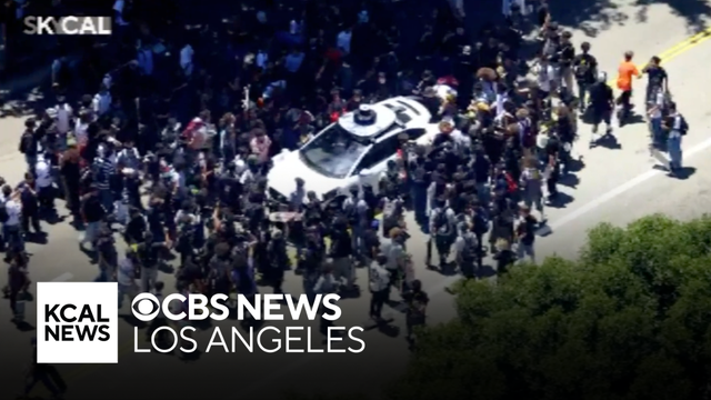Hundreds of skateboarders could be seen as they rolled through Downtown Los Angeles on Friday, which was also "Go Skateboarding Day." Mike Rogers reports.