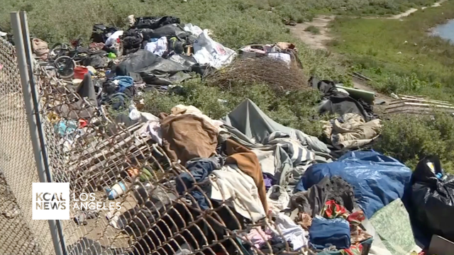 Michele Gile reports from the Santa Ana River in Newport Beach, where city officials are hopeful to begin cleanup of a trash-filled encampment along the bank. They've run into issues however, as the area is federally protected land.