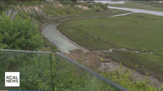 Homes in Newport Beach were yellow-tagged Thursday afternoon following a landslide into the Upper Newport Bay Ecological Reserve below.