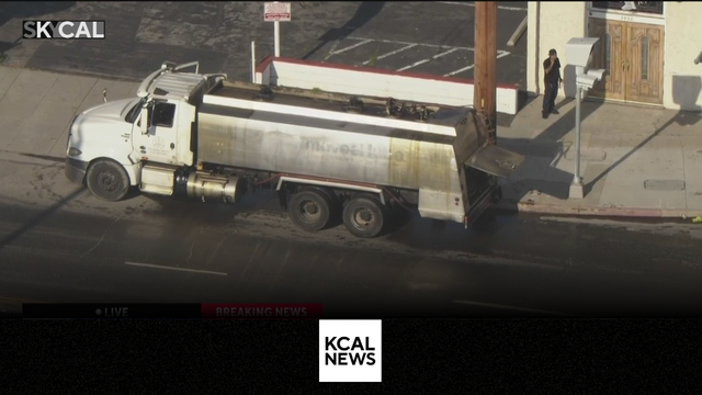 SkyCal was overhead, showing the aftermath of a crash between an oil tanker and another vehicle in Culver City.