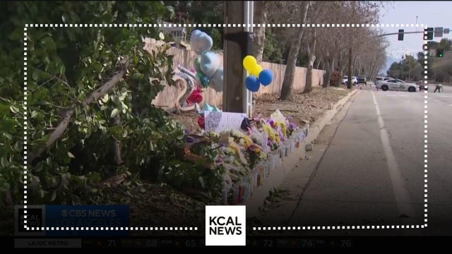 A growing memorial of flowers, candles, balloons, along with a baseball bat and hat, lined the curb of a Rancho Cucamonga road Saturday where two high school students, a brother and sister, died in a Friday afternoon car crash.